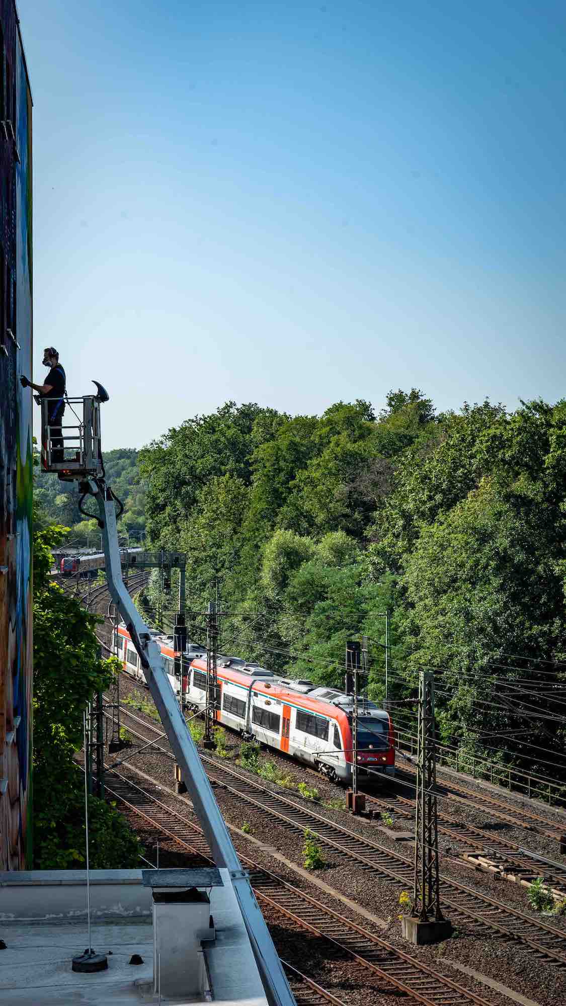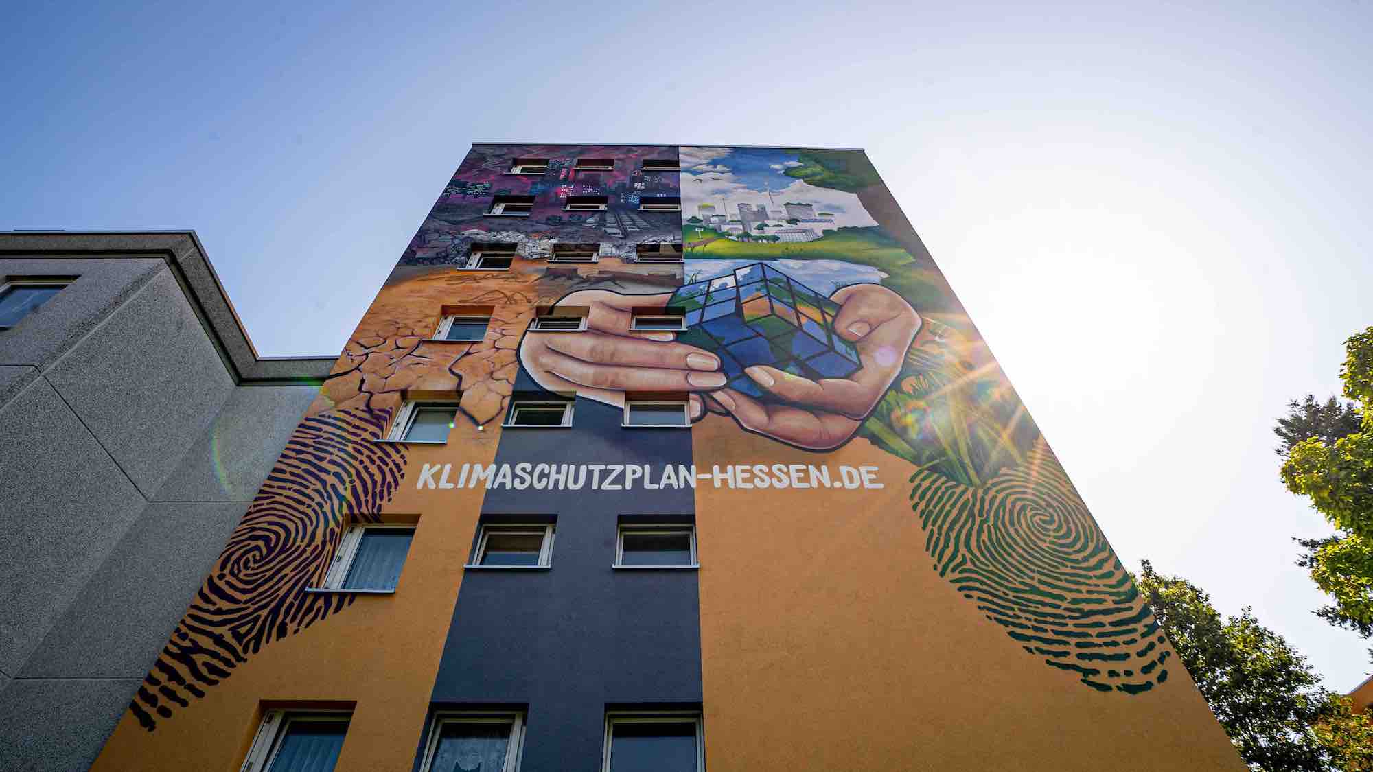 Die 25 Meter hohe Wand stellte die Nassauische Heimstätte zur Verfügung, für die das Thema Klimaschutz auch schon lange ein wichtiges Thema ist: „Wir freuen uns, dass wir dem Land eine unserer Fassaden für dieses tolle Kunstwerk zur Verfügung stellen und so dazu beitragen, die Bürgerinnen und Bürger für den Klimaschutz im Alltag zu sensibilisieren“, berichtet Dr. Thomas Hain, Geschäftsführer der Nassauischen Heimstätte.